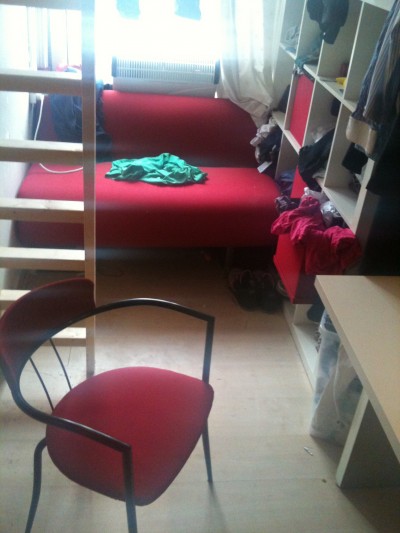 Je kamer op de Stadhouderskade 88, het Nereushuis. Alles moest in 'bordeauw-rood'. Je bent er begin december 2009 gaan wonen.