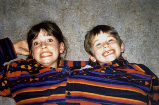 Met Tessel samen in de trui van Martin op de grond in de keuken.